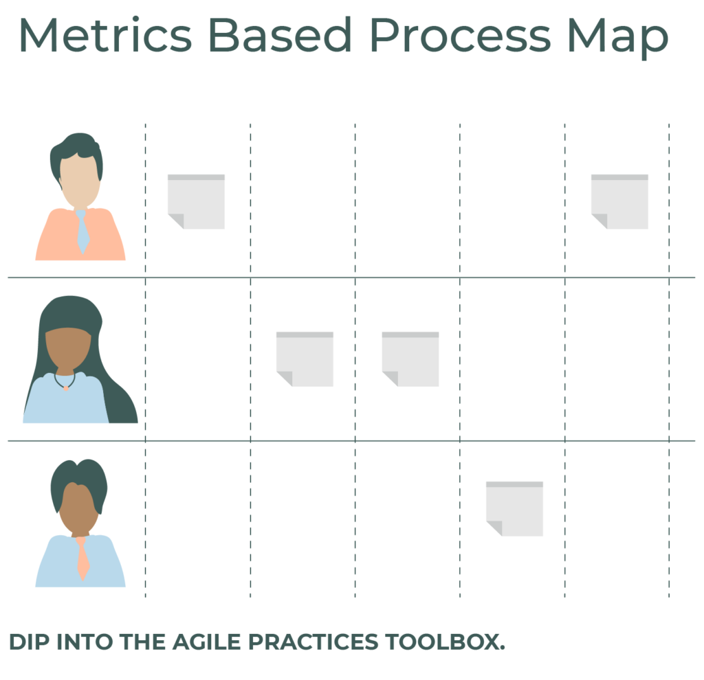 But with limited resources, how best can we make an impact on delivering software? One of the tools from the agile practices toolbox I have used is Metrics Based Process Mapping, a practice that helps identify wait time in an end to end process. The practice is not limited to your team but must encompass the end to end of software delivery. The handover points in processes involving your platforms and your delivery teams can be analysed to find you might invest in automaton to reduce friction and wait time.