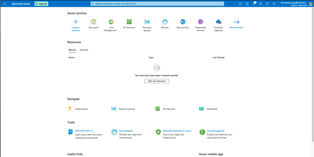 Setting up Azure Key Vault is straightforward. After creating your Azure account, youβll be able to access the Azure portal: