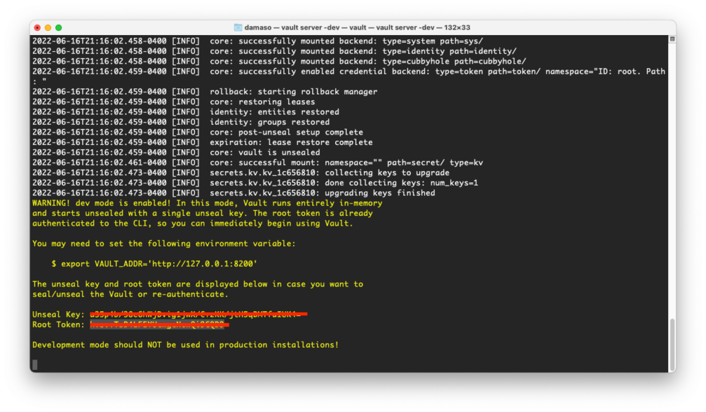 One aspect that HashiCorp Vault shares with AKV is its ease of use. You can interact with Vault from either the command line or the UI. To illustrate this, you can deploy the Vault dev server for macOS using the following commands: